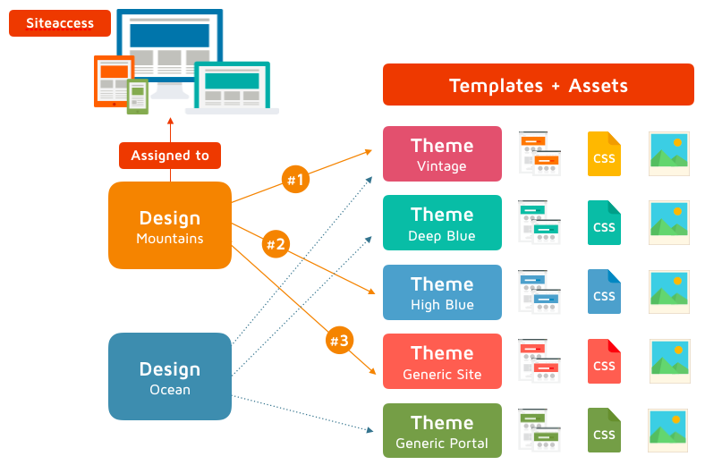 This is a new way to handle design, theming and design overrides, similar to what we had in eZ Publish. It enables you to define different Themes which are collections of assets and templates. You can then assemble Themes (that can override each other) to define Designs, and eventually, assign a Design to a SiteAccess. This is a powerful concept that we aim to use in our out-of-the-box templates and demo sites. It comes especially handy when using eZ Platform for a multisite installation and willing to reuse design parts.